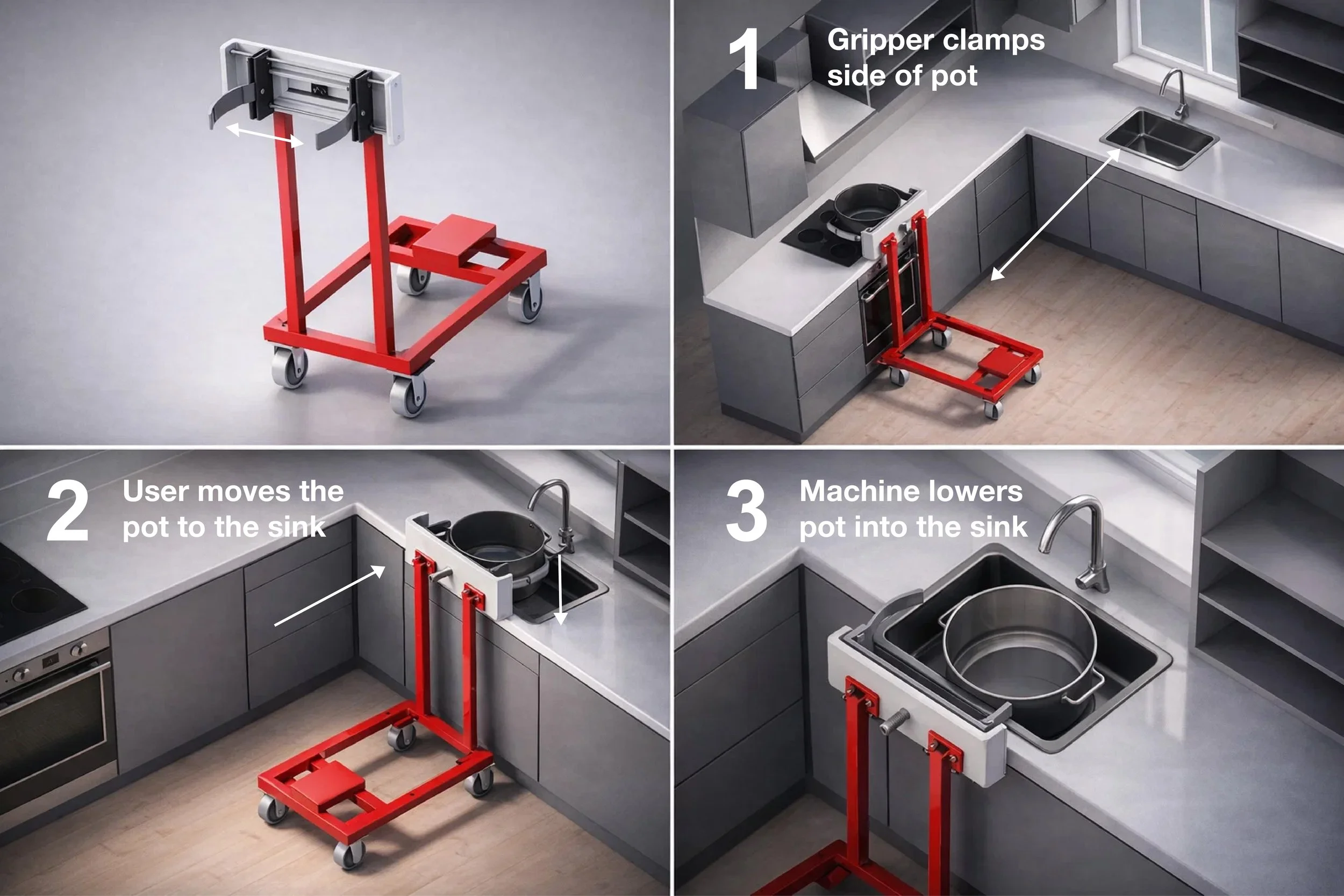 Mechanical systems - Designing low effort way to move boiling water from hob to sink.