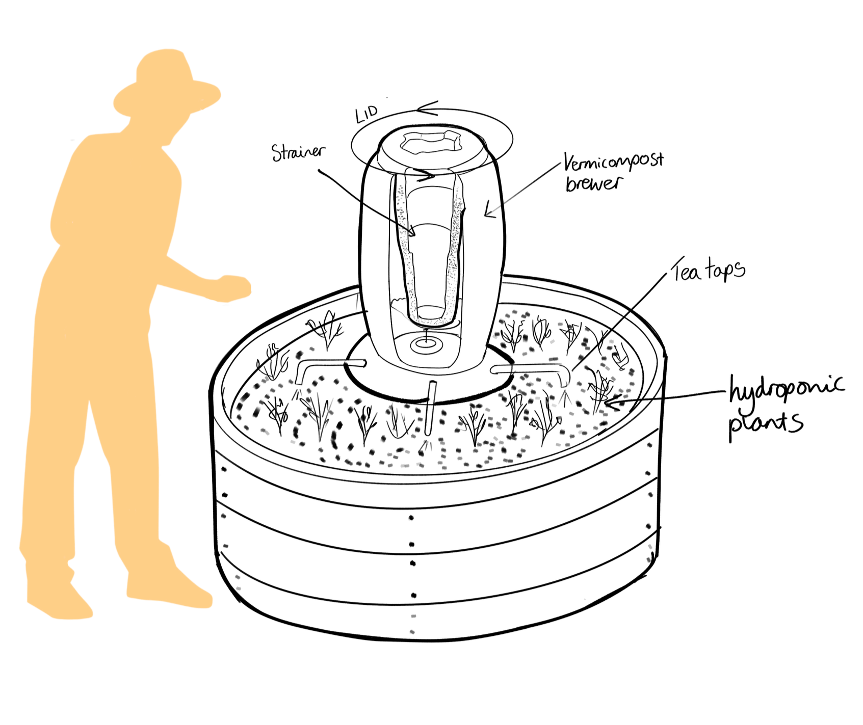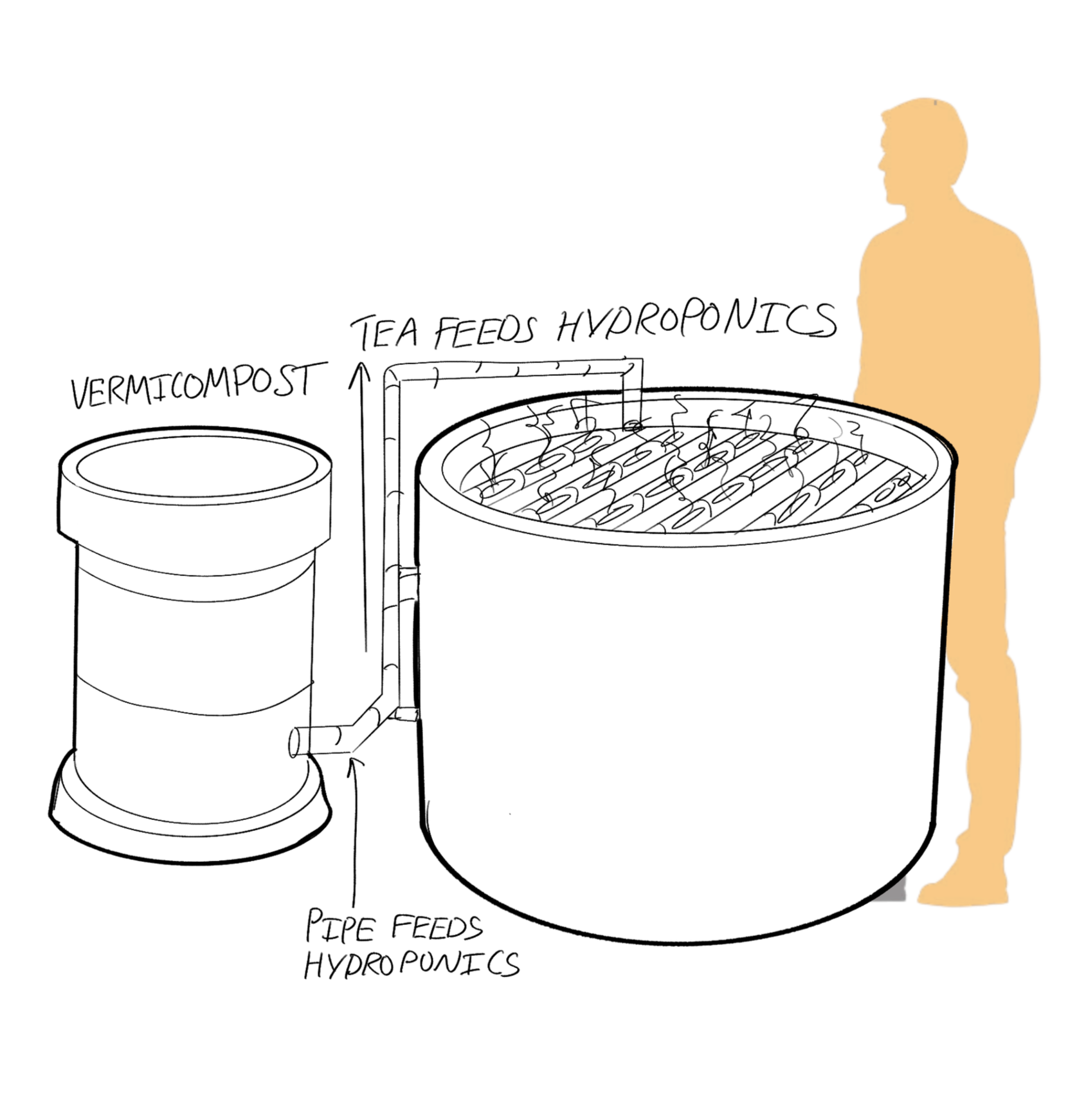 A separate vermicompost bin would supply the castings or tea for the hydroponic system.