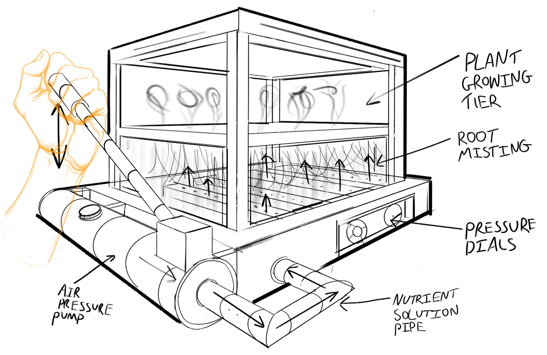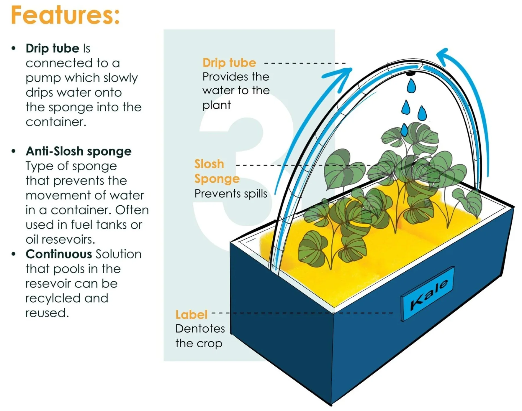 The system uses deep water culture, so the solution must be aerated with an air pump and air stone to support healthy roots.